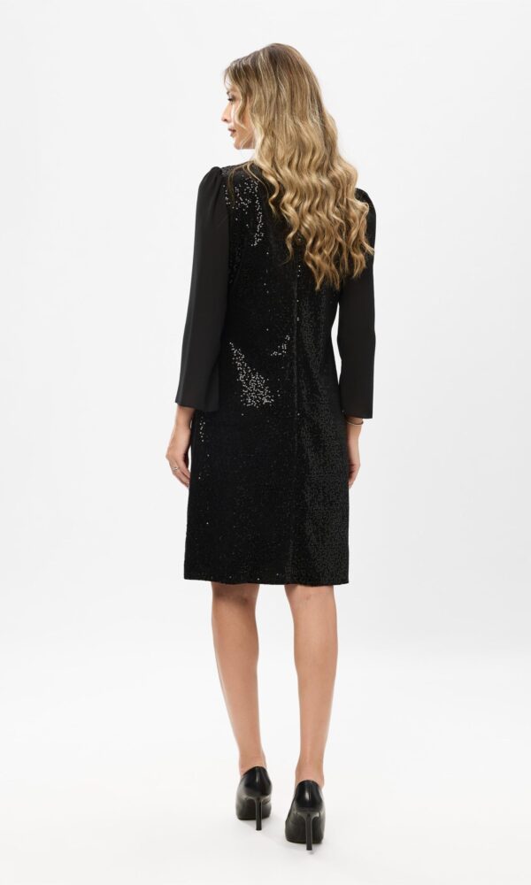 ROCHIE MIDI NEAGRA DIN CATIFEA CU PAIETE SI MANECI VOAL
