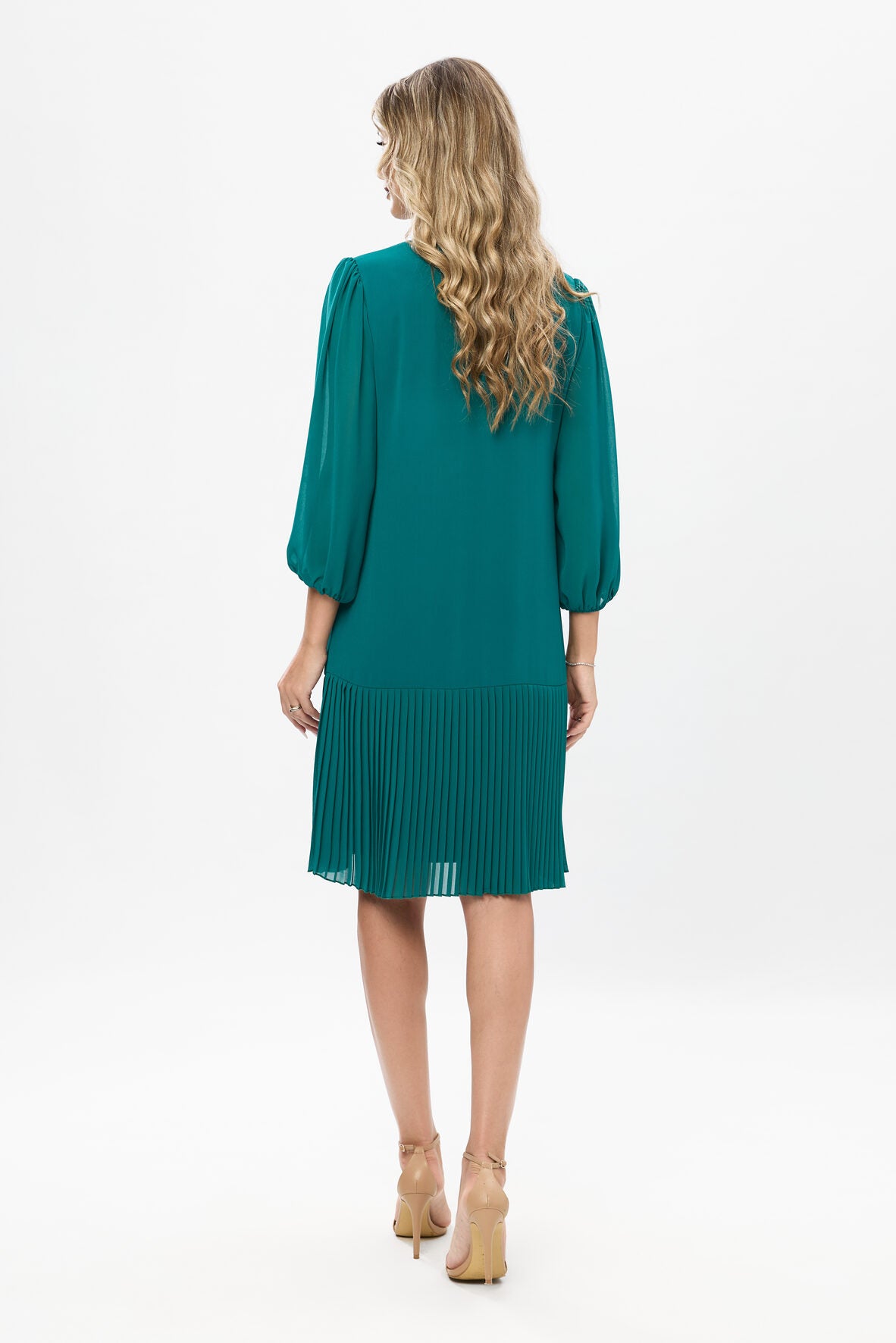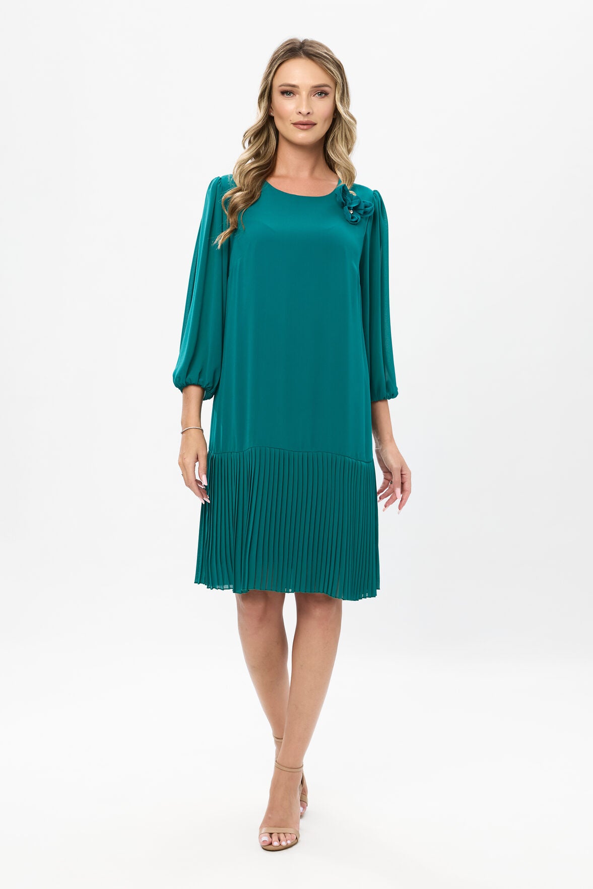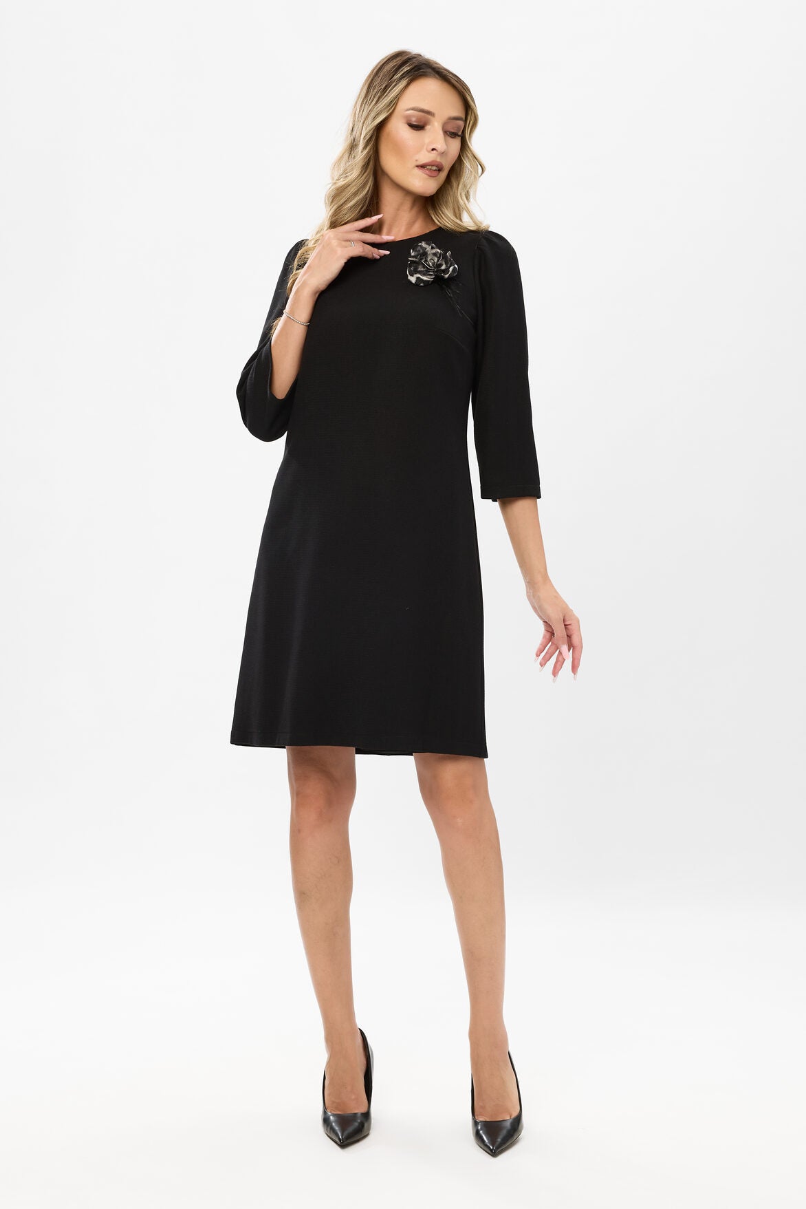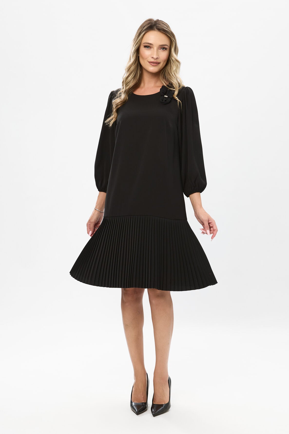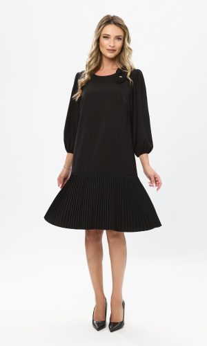 ROCHIE ELEGANTA DIN TESATURA CREP, FLUIDA ,  VOLAN PLISAT LA TERMINATIE ,CAPTUSITA CU VASCOZA